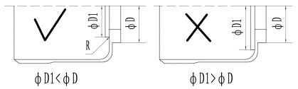 9.柔輪內(nèi)安裝的壓片外徑應(yīng)小于等于柔輪輪緣外徑,壓片接觸外徑應(yīng)倒圓,否則可能引起柔輪底部薄壁部分?jǐn)嗔?。(見下圖)