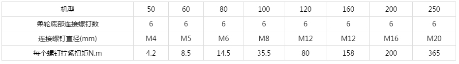 11.為保證柔輪與輸出軸的可靠聯(lián)接,各螺釘?shù)念A(yù)緊力矩應(yīng)符合下表數(shù)值